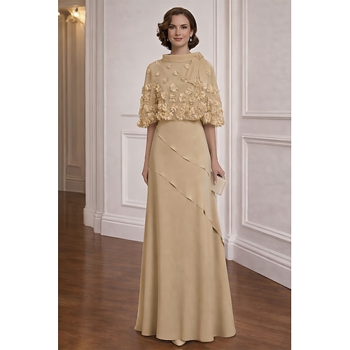 Linea ad A Abito Lunghezza al pavimento Abito da Cocktail Abito da invitata a nozze Abito da cerimonia per signora Mezza Manica Scollo a Barca Elegante Vintage Formale Chiffon Scialli con Fiori 3D