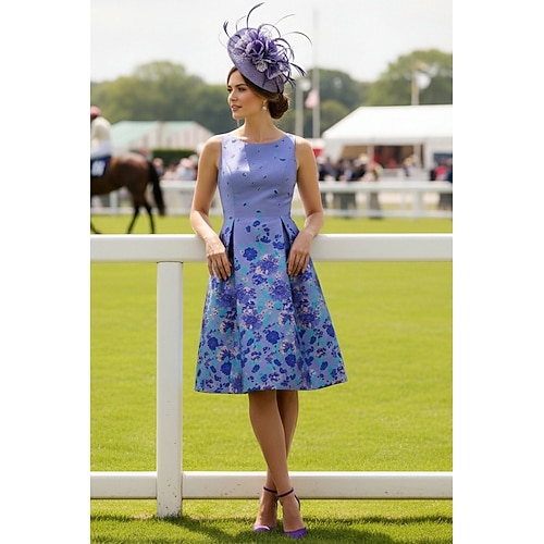 Linea ad A Lunghezza al ginocchio Abito Derby Abito formale Elegante Senza Maniche Girocollo Formale Derby del Kentucky con Blocco di Colore