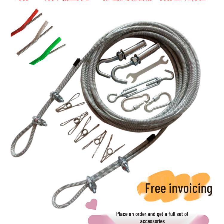 Punch-Free Indoor/Outdoor Steel Clothesline for Drying Quilts & Clothes
