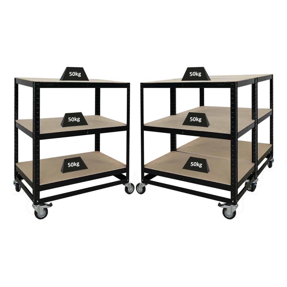 PROREGAL MegaDeal 3 Kommissionierwagen BÜFFEL Kommissionierregal fahrbar 100x90x50cm 3 Ebenen Fachlast 50kg 4 Lenkrollen, davon 2 mit Feststellbremse
