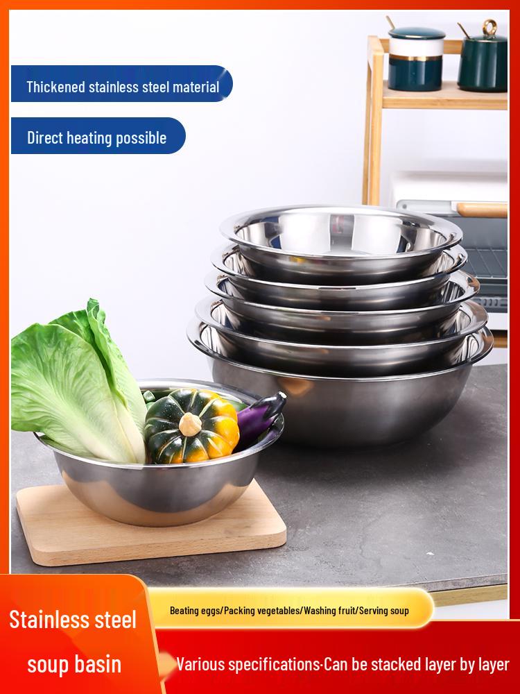 Bassin Rond Polyvalent en Acier Inoxydable: Idéal pour les légumes, la lessive, le lavage des pieds et du visage, le bain. Épaissi et Durable pour un
