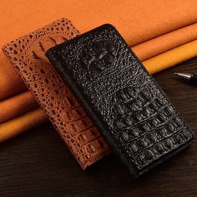 Krokodillenkop Echt Leer Telefoonhoesje voor IPhone 17 Pro Max 13 11 12 14 15 16 Pro Max 16 Plus Portemonnee Flip Cover Hoesjes zwart