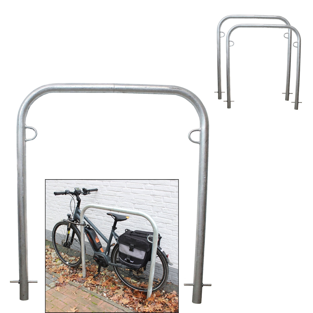 Baumarktplus 2 x Fahrradanlehnbügel 115 x 99 cm Stahl feuerverzinkt Ø 49 mm grau Einbetonieren Fahrradständer Parker Typ U