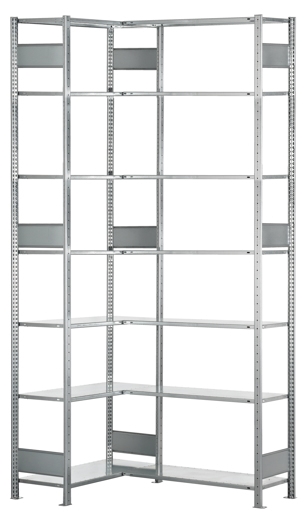 PROREGAL Eckregal | Grundregal (Felder A+B) | HxBxT 300x100x50cm | 2x7 Ebenen | Längenriegel | Verzinkt
