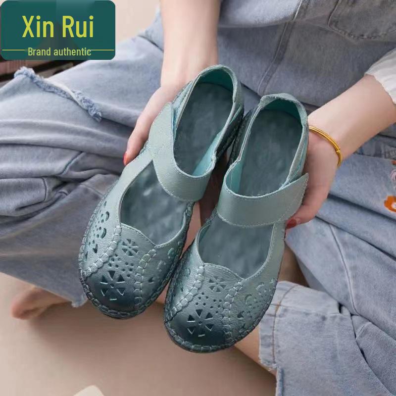 Women's Genuine Leather Closed-Toe Sandals - Comfortable, Non-Slip, Flat Heel, Perfect for Summer Style, Ideal for Middle-Aged & Elderly Women cm brow