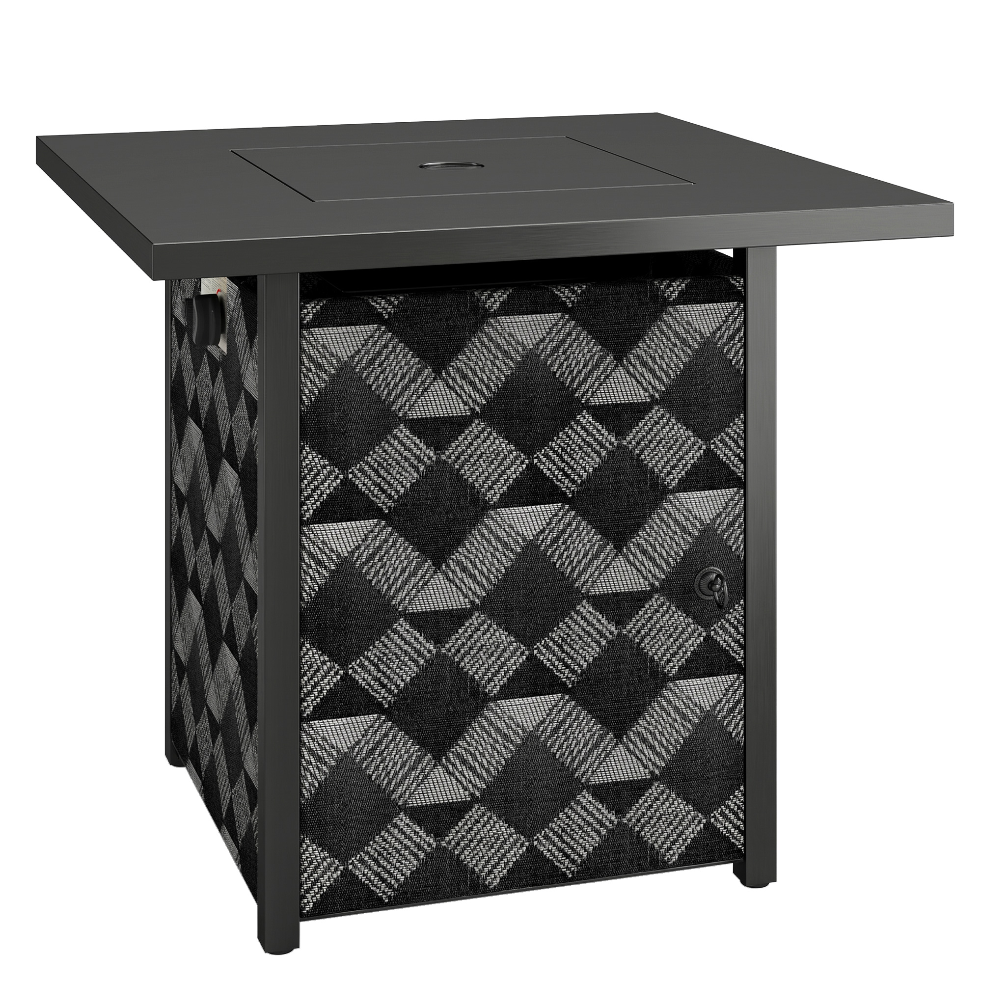 Outsunny Square Propane Gas Fire Pit Table, 40000 BTU Rattan Smokeless Firepit Patio Heater with Lava Rocks and Lid, 71cm x 71cm x 62cm, Dark Grey
