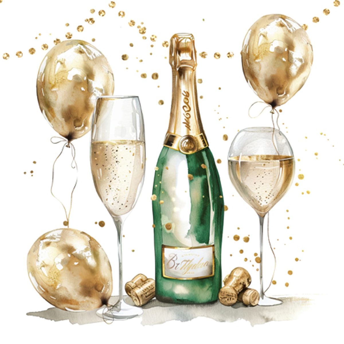 ti-flair 20 Servietten Papier 33x33cm 3-lagig hochwertige Einweg Papierservietten Motivservietten Champagner & goldene Ballons Geburtstag Hochzeit Party