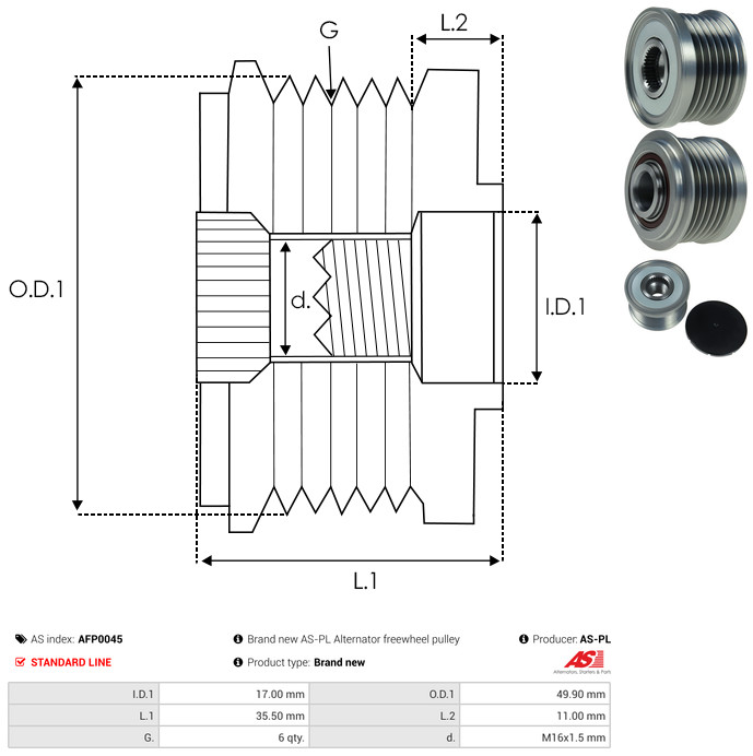 AS-PL Generatorfreilauf AFP3016 für RENAULT 8200489514 7701071376 7701479093