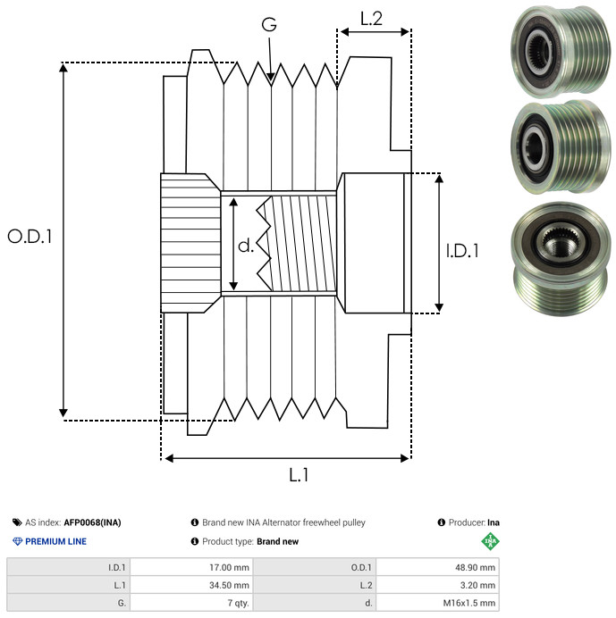 AS-PL Generatorfreilauf AFP0068(INA) für BMW 12317560678
