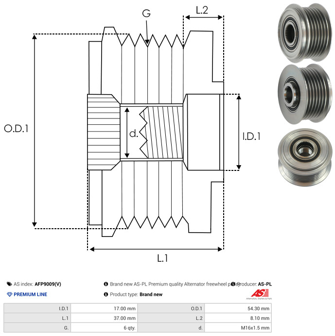 AS-PL Generatorfreilauf AFP9009(V) Universal für FORD VP2M5U10A352AA VP6S4U10A352AA