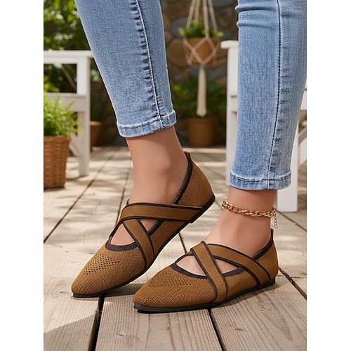 Per donna Casuale Quotidiano Tacco basso Punta a Punta Casual Comfort Minimalismo Tessitura Volante Mocassino Nero Bianco Blu scuro
