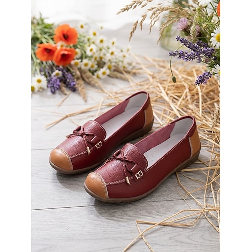 Per donna Quotidiano Passeggiata Festa della Mamma Fiocco Tacco basso Punta Tonda Casual Comfort Minimalismo Pelle Mocassino Vinaccia Nero Bianco