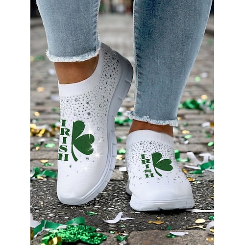 Per donna Casuale Quotidiano Passeggiata Strass Tacco basso Punta Tonda Sportivo Casual Comfort Tessitura Volante Mocassino Bianco / nero Bianco e verde Verde