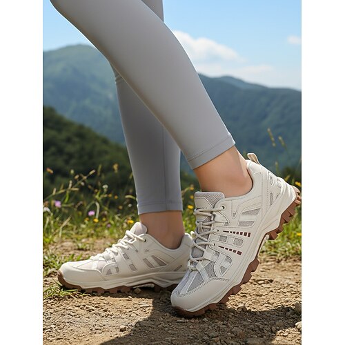 Per donna Casuale Quotidiano All'aperto Tacco basso Punta Tonda Sportivo Casual Comfort Finta Pelle Rete Allacciatura Tessuto almond Nero Rosa