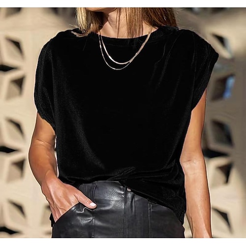 Per donna Maglietta Maglietta in velluto Tinta unica Elegante Manica Corta Ad aletta Girocollo Top Regolari Quotidiano Uscire Nero Vino Blu inchiostro Viola Verde Estate Primavera