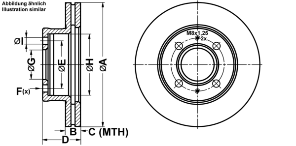 ATE Bremsscheibe 24.0126-0150.1 vorne rechts links belüftet 280,0mm für HYUNDAI KIA 51712-1H000 51712-1H100 51712-2K100