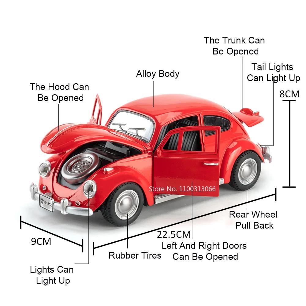 1:VW Käfer Modellauto im Maßstab 1:18 (1955) aus Metallguss, mit Licht, Musik, Gummireifen und Rückziehmechanismus – ein tolles Sammlerstück für Kinde