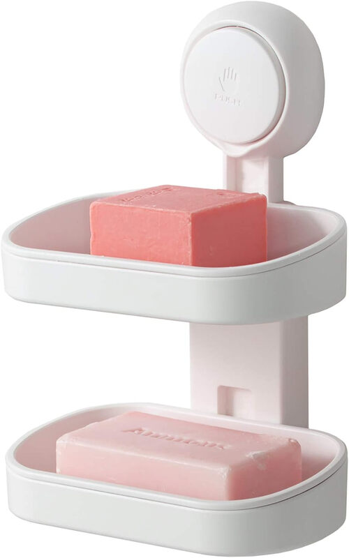 TAILI Double Layer Soap Dish Suction Cup Soap Holder, Strong Sponge Holder for Shower, Bathroom, Tub and Kitchen Sink, Drill-Free, Removable
