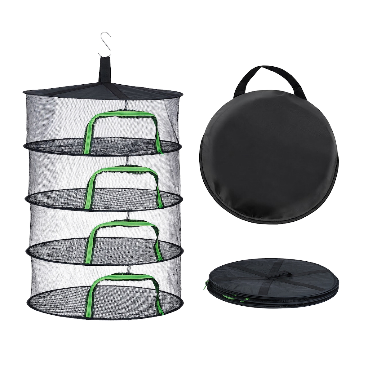 Relaxdays Trockennetz faltbar, Dörrnetz 2 Ebenen für Kräuter, Obst, Gemüse, Fischtrockner zum Aufhängen, orange/schwarz