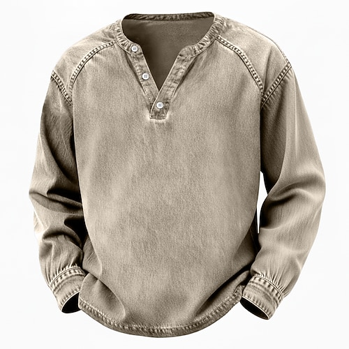 Per uomo Maglia Henley Camicia 100% cotone lavaggio acido Manica Lunga Henley Primavera Autunno Tutte le stagioni Vintage Retrò Vintage Casual Stile Vintage Lavato Casuale Blu Marrone Grigio