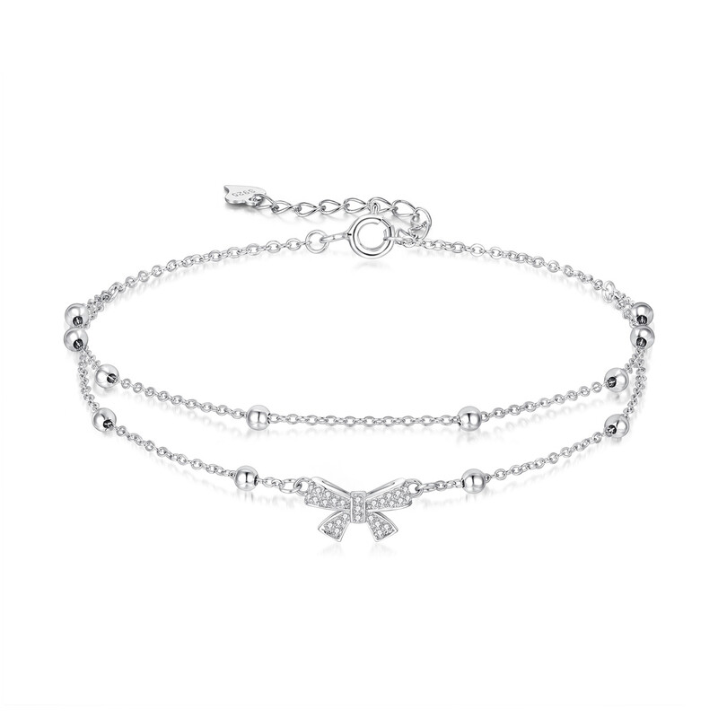 Ever Faith Layered Bowknot Bracelet with Sparkly White Cubic Zirconia and Tiny Beads on Adjustable Link Chain