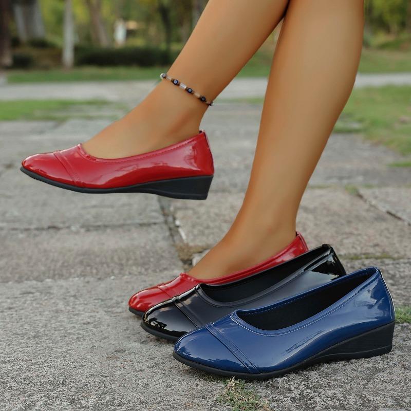 Fashion Classic Round Toe Red Spring Slip on Wedge Heel for Office Career Women Casual Elegant Black Soft Leather Pumps Ga48 cm