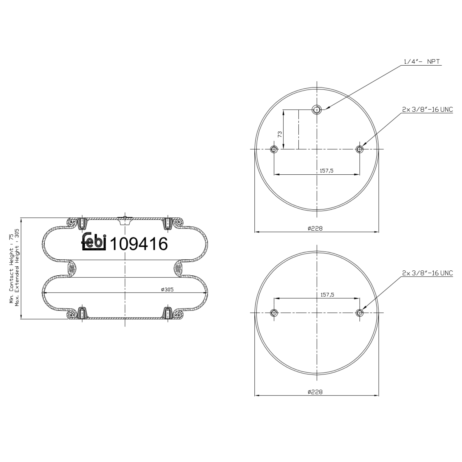 FEBI BILSTEIN Federbalg, Luftfederung 109416 Universal 226mm