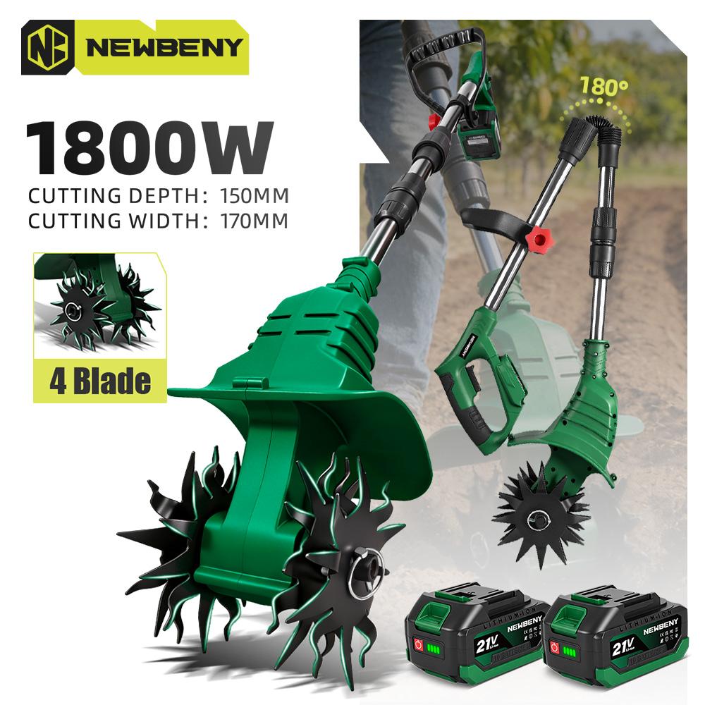 NEWBENY Elektrischer Bodenfräse Kultivator 1800W Garten Tragbar Rasentrimmer Bodenwendendes Elektrowerkzeug für Makita Akku-Pin