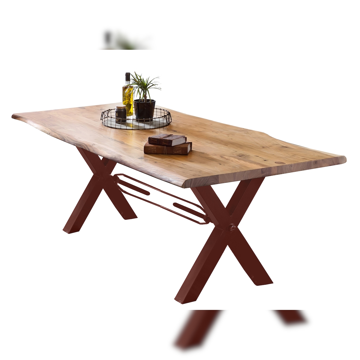 SIT Möbel Esstisch 200 x 100 cm | 36 mm Platte Akazie mit Baumkante | Gestell Metall X-Form | B 200 x T 100 x H 77 cm | 15563-41 | Serie TABLES & CO