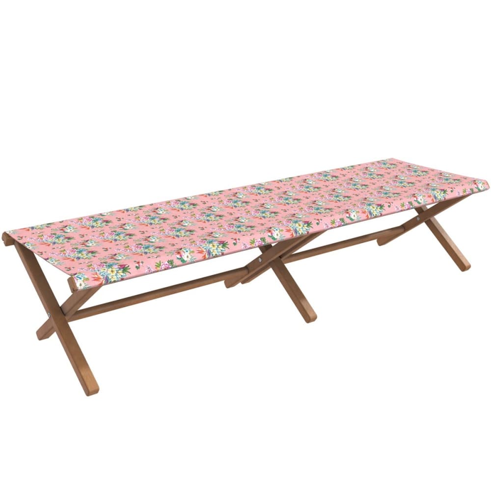 Lettino da campo in faggio verniciato e tessuto motivo floreale rosa