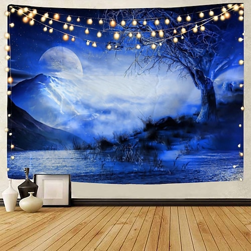 luna mare cielo arazzo da parete arredamento artistico coperta tenda picnic tovaglia appesa casa camera da letto soggiorno dormitorio decorazione paesaggio notte intera oceano nuvola stella