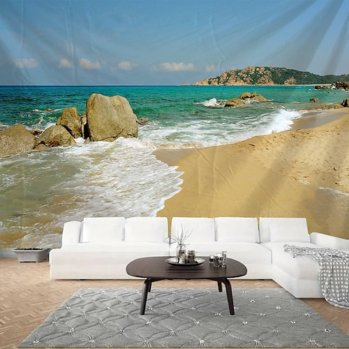 Bellissimo arazzo da parete con mare e spiaggia, grande arazzo da parete, sfondo fotografico, coperta, tenda, casa, camera da letto, soggiorno, decorazione
