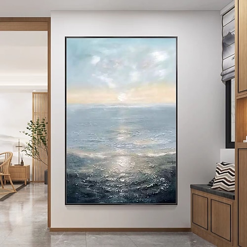 grande dipinto a mano tramonto paesaggio marino dipinto ad olio su tela originale astratto blu mare paesaggio dipinto strutturato arte della parete soggiorno decorazioni per la casa senza cornice