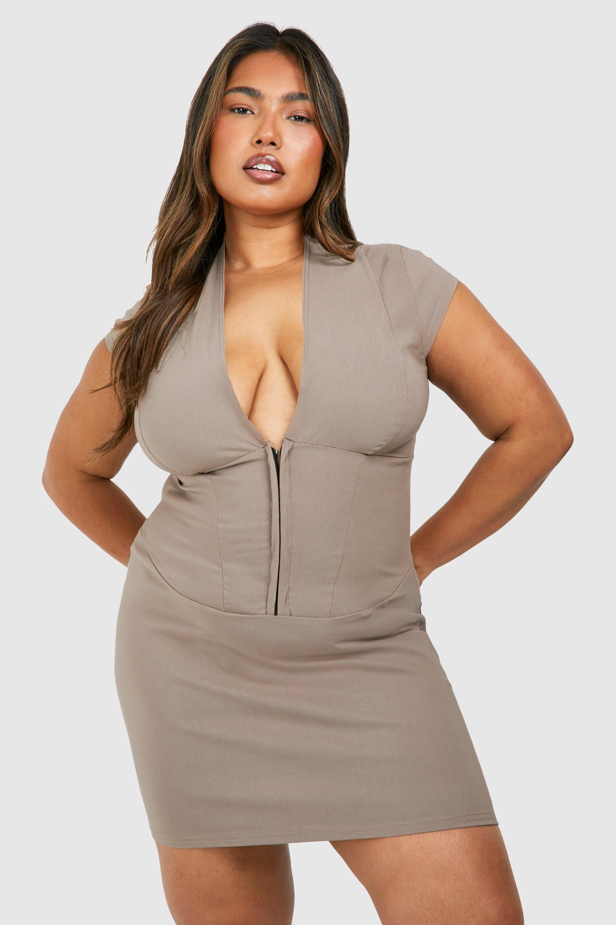 Boohoo Womens Plus Corset Hook And Eye Bodycon Dress - Taupe - Size 22 UK | Boohoo Sale | Discount Designer Brands