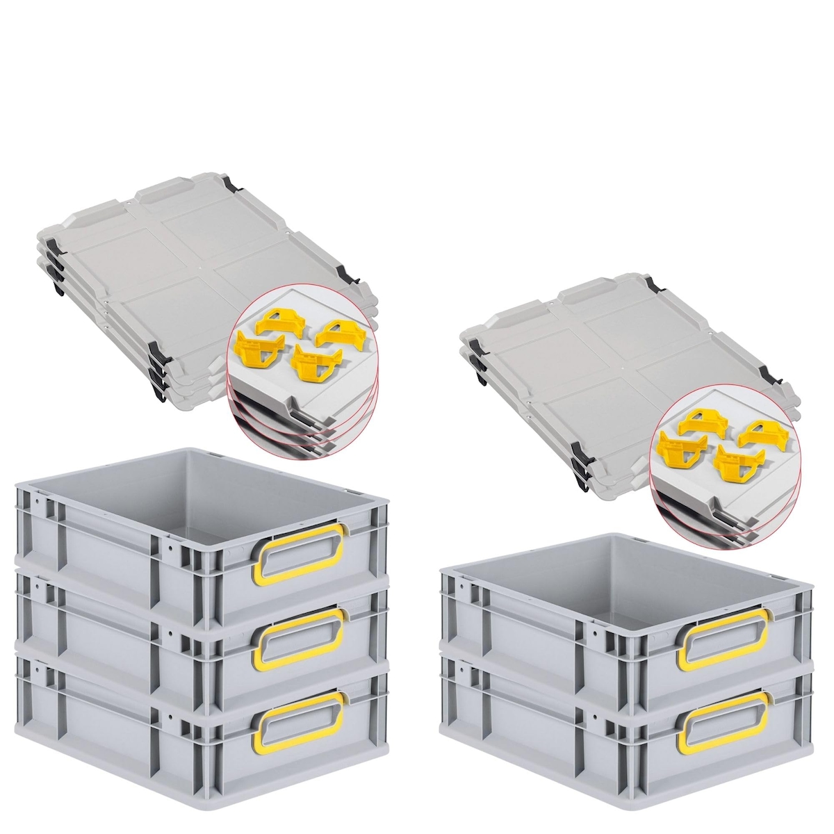 PROREGAL SparSet 5x Eurobox NextGen Color mit Auflagedeckel & Verschlüsse, HxBxT 12x30x40cm, 11L, Grau, Griffe gelb zu, Eurobehälter, Box