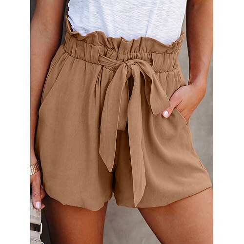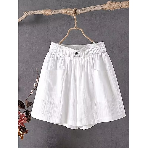 Per donna Pantaloncini in cotone e lino Pantaloncini Estivi Shorts da Spiaggia Pantaloncini larghi Vacanza Essenziale Casual Corto Vita Alta Semplice Tasca Fascia Elastica Comodità Asciugatura Rapida