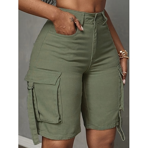 Per donna Pantaloncini cargo Shorts Pantaloncini Estivi Vacanza Moda Streetwear Corto Vita Alta Tinta unica Semplice Tasca Traspirabilità Confortevole Inelastico Quotidiano Vacanza Formale Nero
