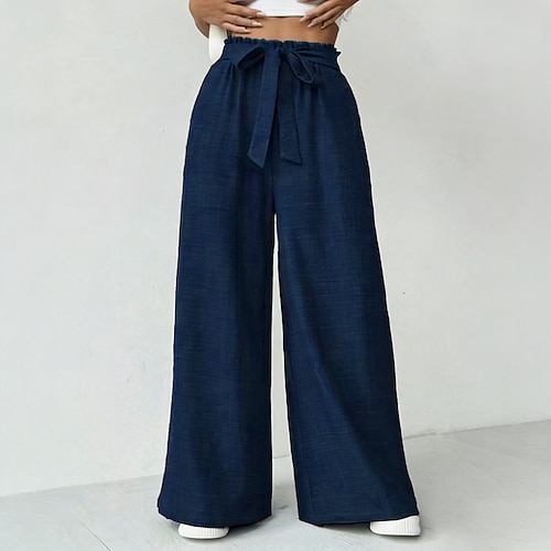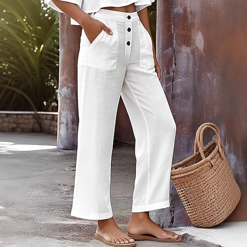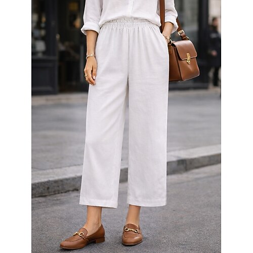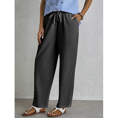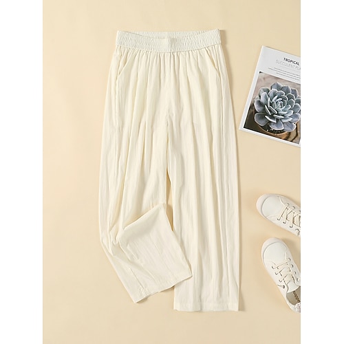Per donna Pantaloni in cotone e lino Pantaloni Pantaloni Estivi Pantaloni Larghi Vacanza Essenziale Casual Lunghezza intera Vita Alta Semplice Coulisse Tasca Fascia Elastica Morbido Confortevole