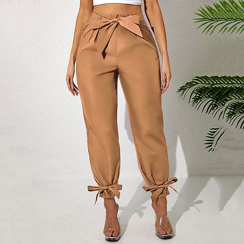 Per donna Pantaloni Pantaloni Estivi Pantaloni da Spiaggia Pantaloni casual Vacanza Moda Casual Quotidiano Lunghezza alla caviglia Vita Alta Tinta unica Semplice Coulisse Gamba Dritta Comodit