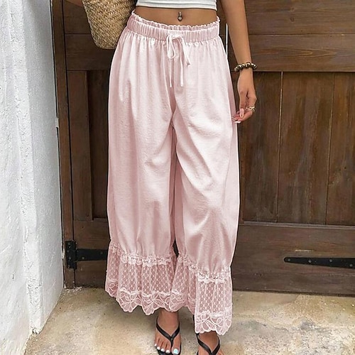 Per donna Pantaloni Pantaloni Estivi Pantaloni da Spiaggia Vacanza Moda Casual Quotidiano Lunghezza intera Vita Alta Tinta unica Semplice Coulisse Pizzo Gamba larga Comodità Asciugatura Rapida Morbido