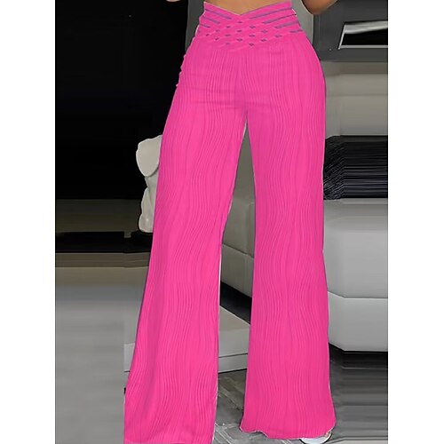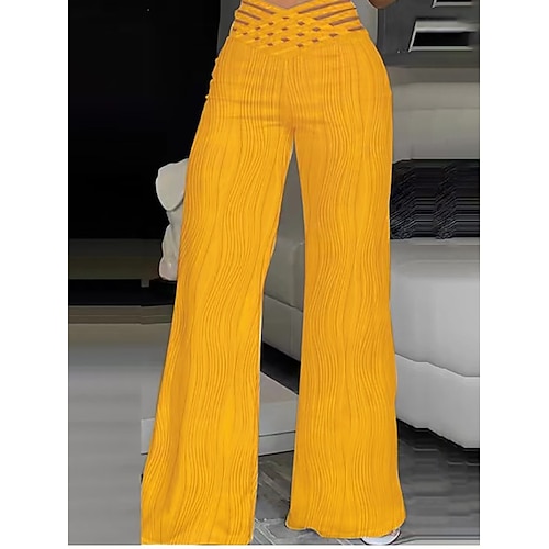 Per donna Chinos Pantaloni Palazzo Vacanza Moda Streetwear Lunghezza intera Vita Alta Semplice Fascia Elastica Foro Comodo Morbido Confortevole Elasticizzato Quotidiano Ufficio Blu Nero Bianco Giallo