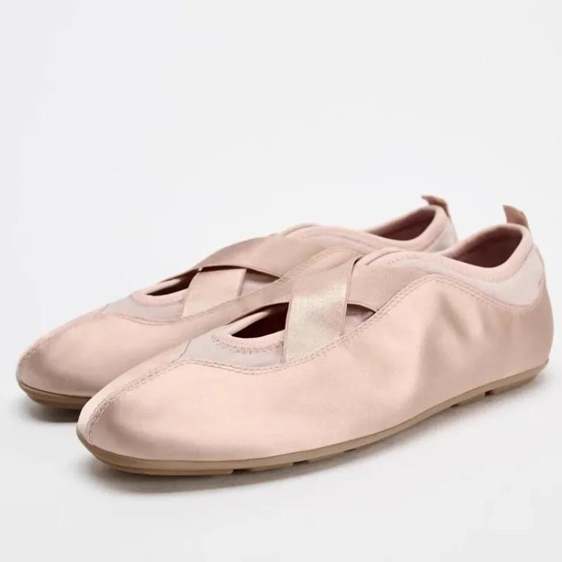 Women's Ballet Flats Round Toe Soft Sole Lightweight Satin Spring Sweet Dancing Mary Jane Shoes for Ladies cm pink
