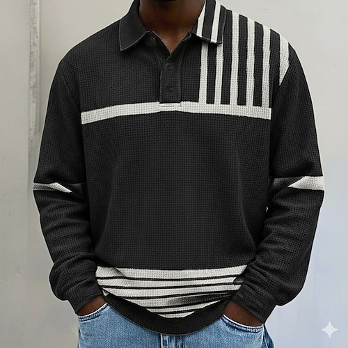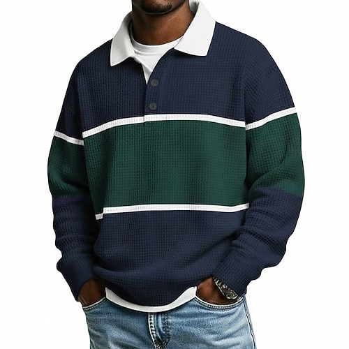 Per uomo Strisce orizzontali Magliette Polo a Nido d'Ape Polo da rugby Testurizzato Manica Lunga Magliette polo Bavero Abbigliamento Sportivo Casual Scuola Athleisure Abbigliamento quotidiano Stampa