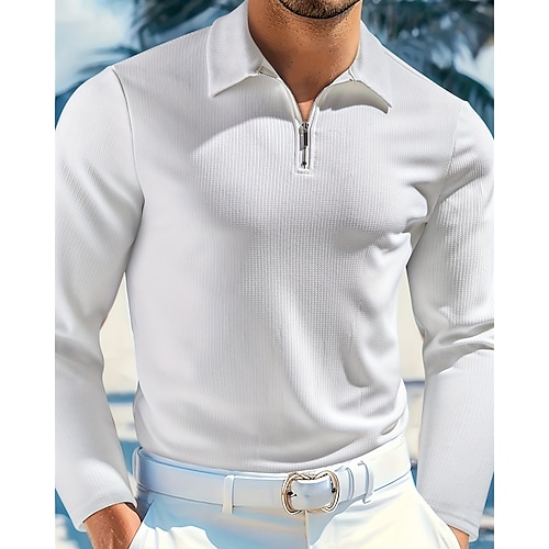 Per uomo Polo Polo con zip a un quarto Casuale Vacanza Zip a un quarto Manica Lunga Moda Essenziale Semplice Jacquard Primavera Autunno Vestibilità regolare Nero Bianco Kaki Grigio Polo