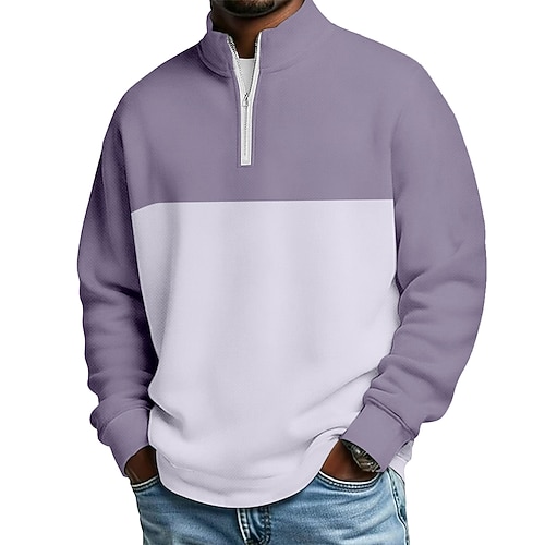 Per uomo Polo Polo con zip All'aperto Abbigliamento quotidiano Bavero Manica Corta Moda Hawaiano Blocco di colori A righe Cerniera Estate Vestibilità regolare Bianco Rosa Blu reale Blu Polo