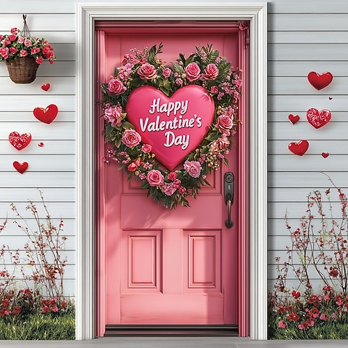 decorazioni esterne per San Valentino copriporta arazzo per porta tenda per porta decorazione fondale striscione per porta interno/esterno per porta d'ingresso fattoria ghirlanda a forma di cuore