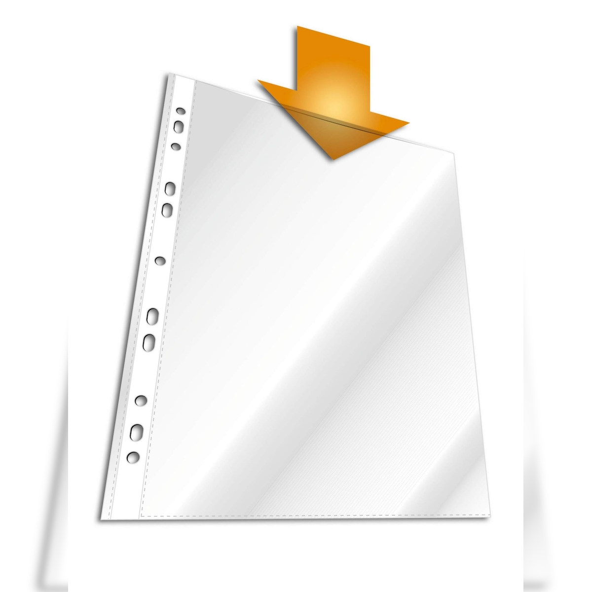 Rexel Prospekthüllen DIN A3 quer Genarbt Transparent 80 Mikron PP (Polypropylen) Öffnung oben 11 Löcher 224431 10 Stück