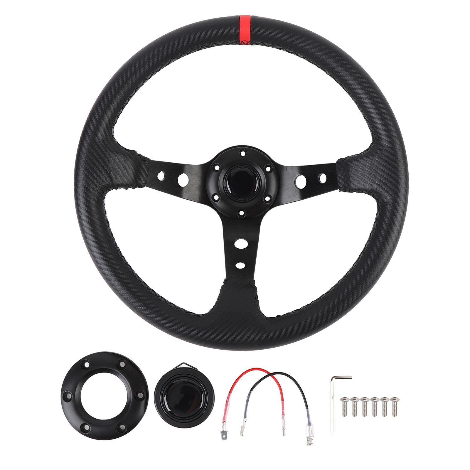 14-inch Autocoureur Stuurwiel PVC Aluminium Universeel Koolstofvezel Look Sportstuurwiel met Claxonknop voor 6 rood