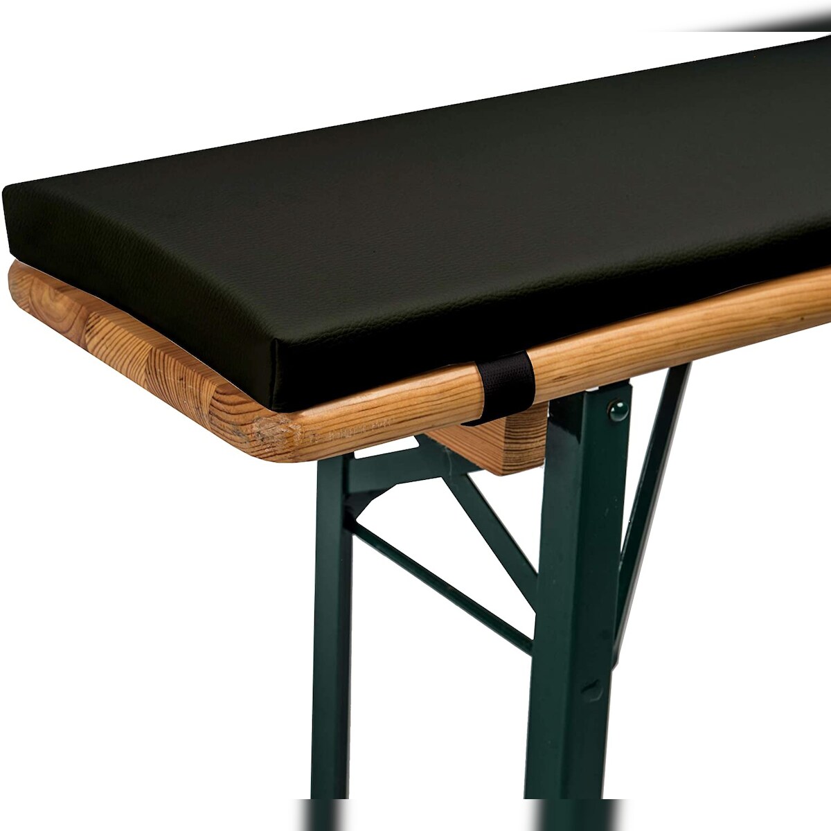 TexDeko Bierbankauflage gepolstert 220x25x4cm XL Bankauflage waschbar mit Reißverschluss zum selber aufziehen (Schwarz Kunstleder)