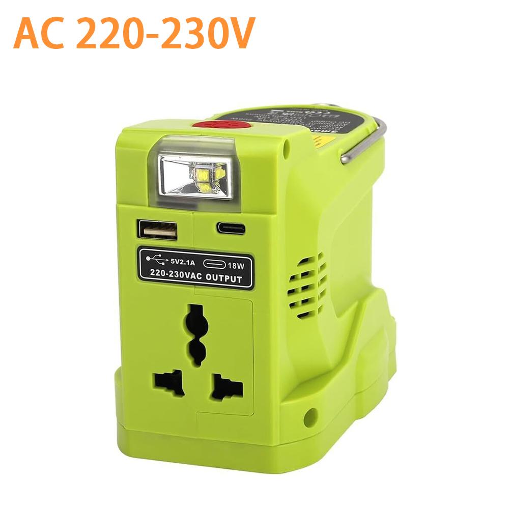 200W Strømomformergenerator for Ryobi 18V Litiumbatteri, DC 18V til AC 120V 220V Bærbar Strømstasjon med 280lm LED-lys